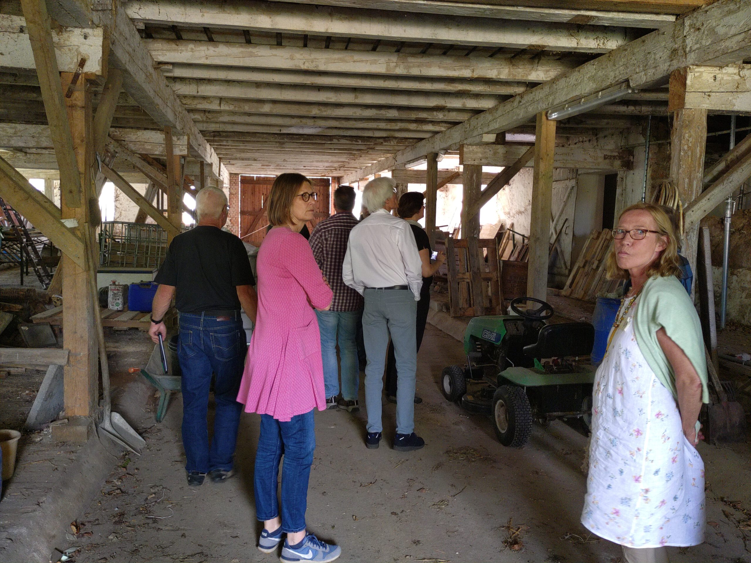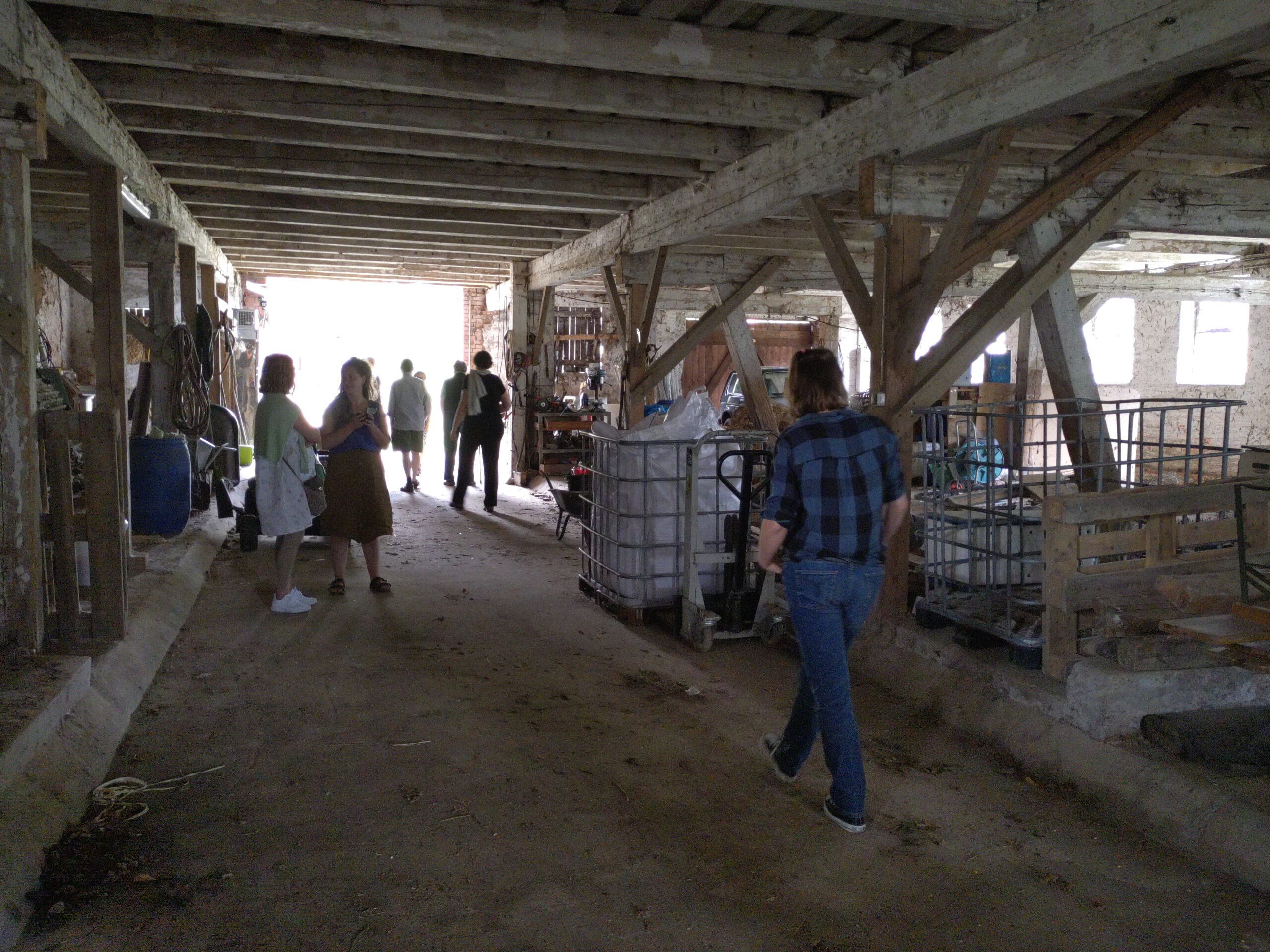 Die Scheune liegt direkt im Ortskern des idyllischen Dorfes Tüschow. Ihr Erhalt liegt sowohl den Besitzer:innen als auch den Dorfbewohner:innen am Herzen. Die Architektin und Stadtentwicklerin Stefanie Raab gab eine Einführung in die FreiRaum-Entwicklung und niedrigschwellige, kostengünstige Sanierung. Anschließend erkundeten wir die Scheune und ihre Nebengebäude, um im Workshop gemeinsam Ideen für den FreiRaum zu entwickeln.