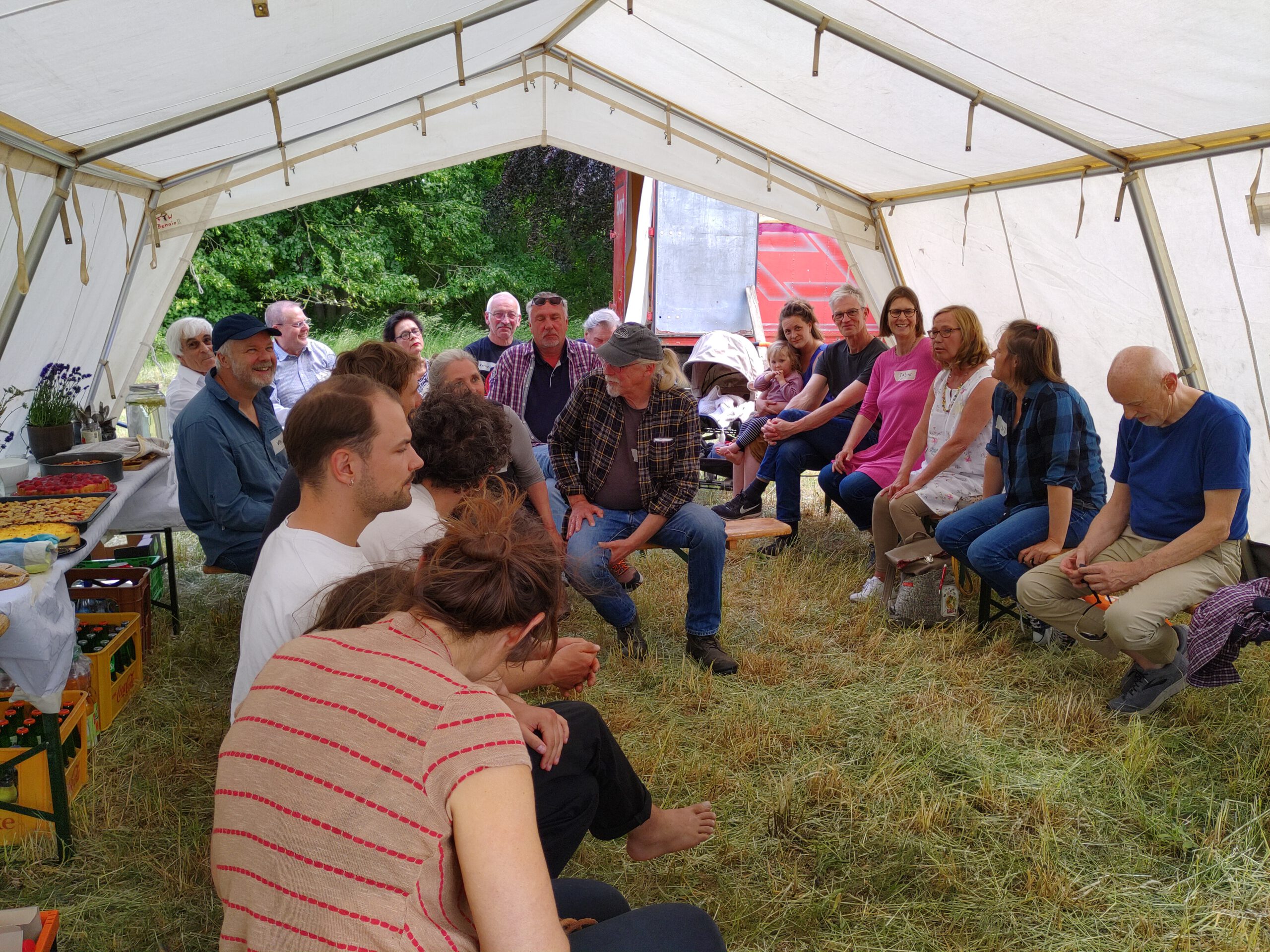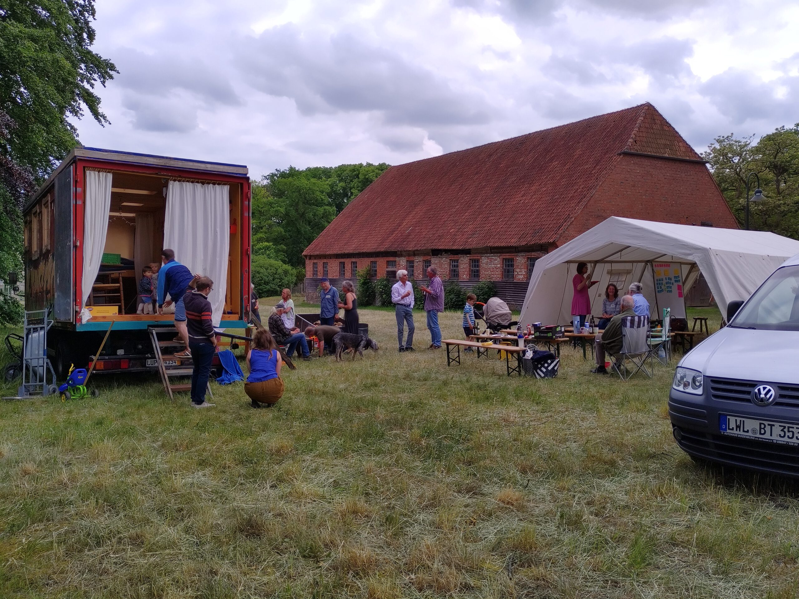 Am 10. Juni 2022 trafen wir uns zum Workshop und Sommerfest mit Grillen und Lagerfeuer auf der Wiese vor der Alten Scheune in Tüschow, um gemeinsam Nutzungsideen für die große Scheune mit Nebengebäuden zu entwickeln. Hier ist Platz für Werkstätten, Studios, Seminarräume, Ateliers, Co Working, Veranstaltungen… direkt am Naturschutzgebiet an der Schaale und mit Blick auf das Tüschower Schloss.