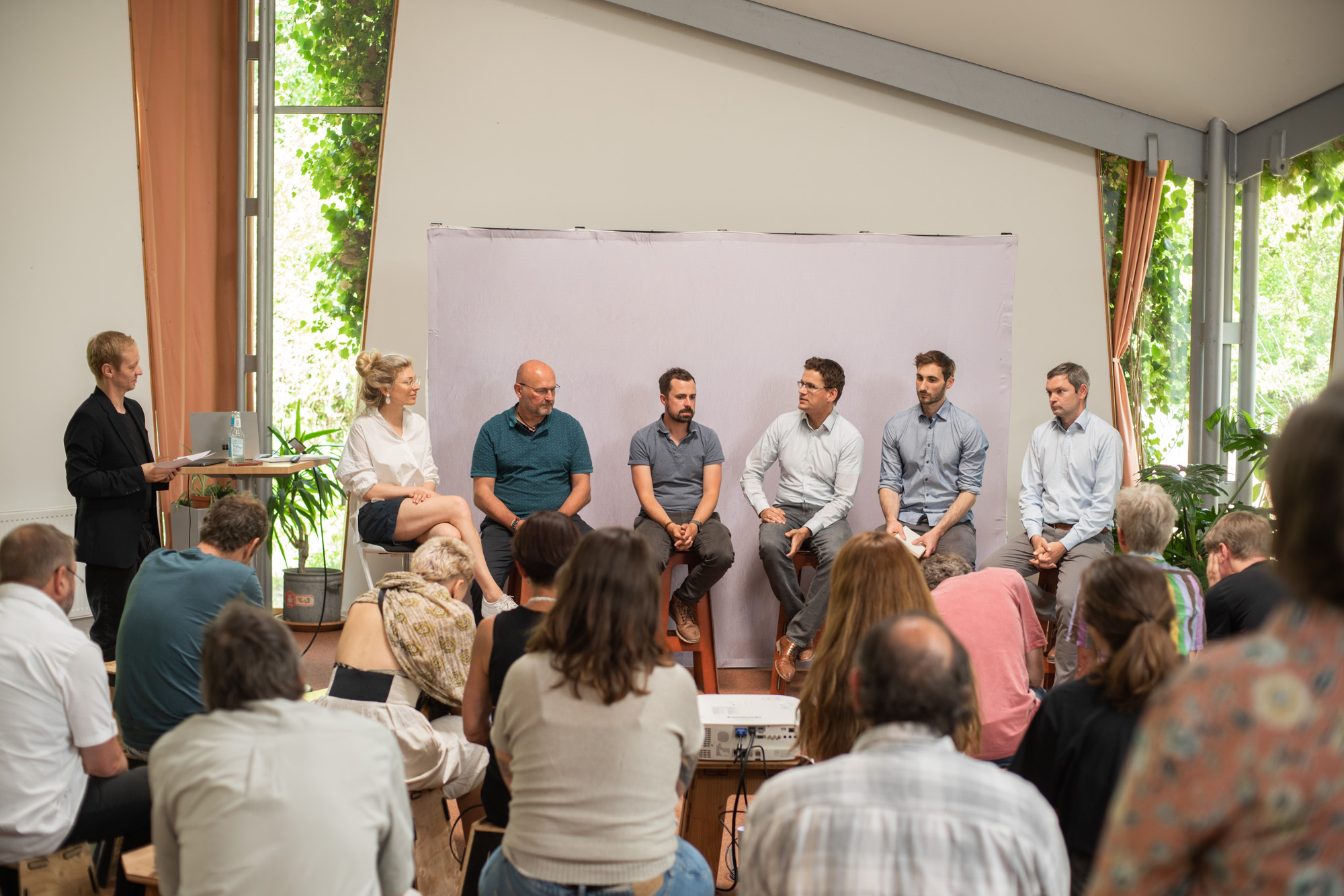 Die Zukunftswerkstatt 1 fand zum Thema Bürger:Energie statt. In der Zukunftswerkstatt auf dem Gelände der Wir bauen Zukunft eG in Nieklitz am 7.6.2023 sondierten wir mit 30 Teilnehmenden, wie wir das wachsende Kompetenz-Netzwerk aus interessierten Bürger:innen und Innovator:innen, Kommunen und Fachfirmen in der Elberegion weiter ausbauen können. In einer Podiumsdiskussion und einem World Café mit 4 Stationen erkundeten wir, wie partizipative Methoden dazu beitragen, regionale Wertschöpfungsketten durch die Energiewende in der Elberegion zu stärken. Die Zukunftswerkstatt Bürger:Energie warf dazu folgende Zukunftsfragen auf: