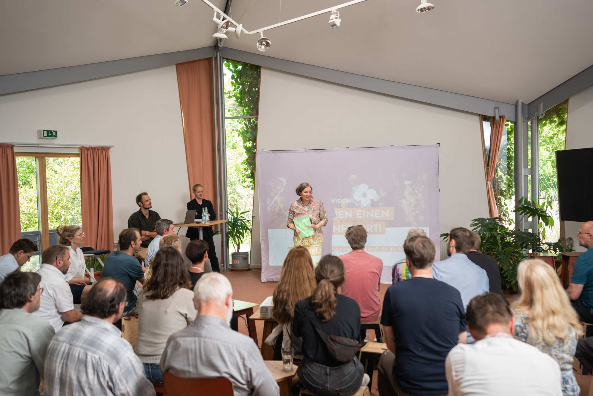 - Grußworte: Anke Hollerbach, Leiterin des Biosphärenamtes Schaalsee-Elbe, Corinna Hesse, Vorstand Kreative MV, Johannes Comeau-Milke, Vorstand Wir bauen Zukunft eG