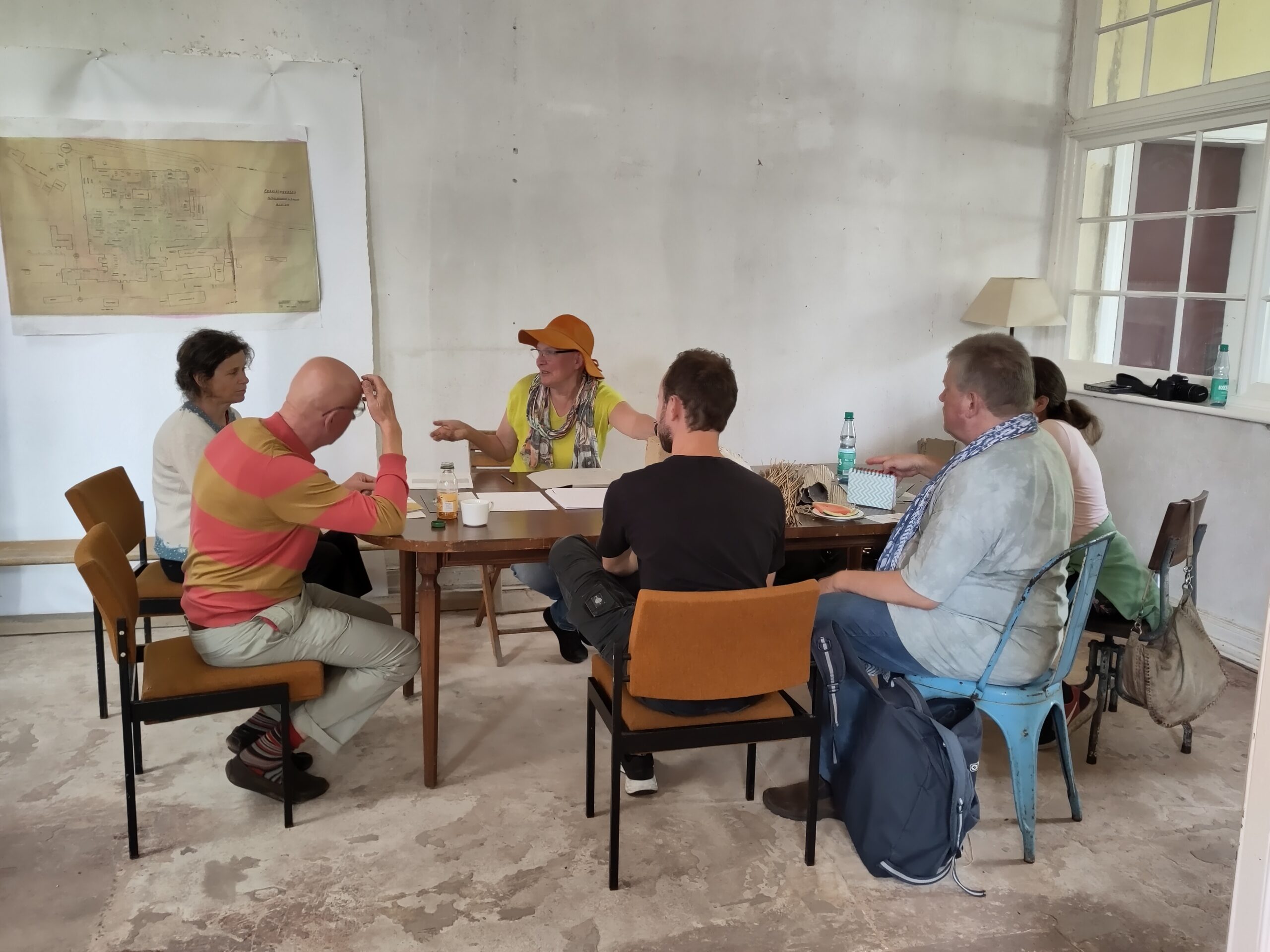 Die Zukunftswerkstatt 2 fand zum Thema „Natürlich: Bauen & Sanieren“ am 6.7.2023 auf dem Gelände der Inselfabrik Eldenland in Neu Kaliß statt (eine leerstehende ehemalige Papierfabrik, die aktuell umgenutzt wird). Auch hier fanden sich interessierte Bürger:innen, Expert:innen und Fachfirmen zusammen (33 Teilnehmende). In Kooperation mit dem Hochschulprojekt „Region als Campus im Elbe Valley“ wurde außerdem sondiert, wie mehr Studierende in die Region gebracht werden können, um Innovation im Bau zu ermöglichen. In einer Podiumsdiskussion und einem World Café mit 3 Stationen erkundeten wir, wir die Potenziale des traditionellen Handwerks (v.a. im Lehmbau) wiederbelebt und mit innovativen Techniken erneuert werden kann: